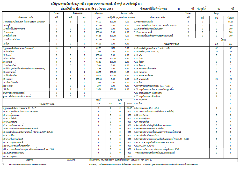 สถิติคดีอาญา 4 กลุ่ม ประจำเดือน มีนาคม 2568 ของ สภ.เมืองสิงห์บุรี