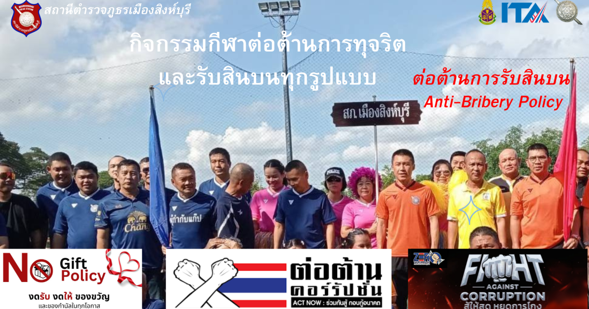 เมื่อวันที่ 24 มกราคม 2568 เวลา 15.30 น. สถานีตำรวจภูธรเมืองสิงห์บุรี นำโดย พันตำรวจเอกปฏิกรณ์ หาญหัตถกิจ ผู้กำกับการสถานีตำรวจภูธรเมืองสิงห์บุรี ได้จัดกิจกรรมกีฬาฟุตบอลกระชับมิตร ประจำปี 2568 เพื่อเป็นกิจกรรมที่เสริมสร้างและความกระชับความสัมพันธ์ที่ดีของข้าราชการตำรวจ และเป็นการสร้างขวัญและกำลัง ใจ เพื่อความผ่อนคลายจากการปฏิบัติหน้าที่ และเพื่อให้เกิดความสามัคคีกลมเกลียวในหน่วยงาน ตลอดจนเป็นจุดเริ่มต้นของการสร้างเสริมพลานามัย สุขภาพที่แข็งแรง และเป็นกิจกรรมเพื่อรองรับการทำงานร่วมกันอย่างมีประสิทธิภาพในอนาคต และมีความพร้อมทั้งด้านร่างกายและจิตใจในการที่จะรับใช้ประชาชนตามหน้าที่ผู้พิทักษ์สันติราษฎร และในโอกาสนี้ พันตำรวจเอกปฏิกรณ์ หาญหัตถกิจ ผู้กำกับการสถานีตำรวจภูธรเมืองสิงห์บุรี ถือโอกาสประกาศเป็นกิจกรรมกีฬาต่อต้านการรับสินบนและต่อต้านการทุจริตคอรัปชั่นในทุกรูปแบบ และยังคงต้องจัดกิจกรรมแบบนี้ต่อไปอย่างต่อเนื่อง