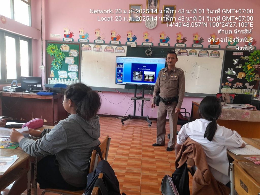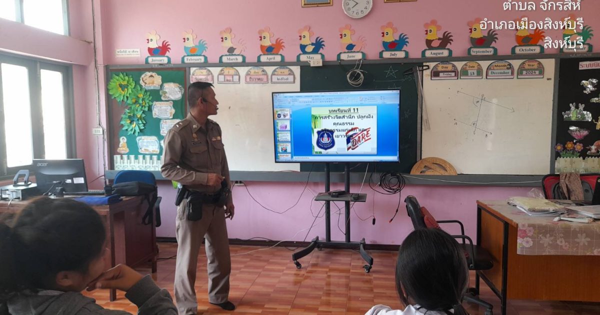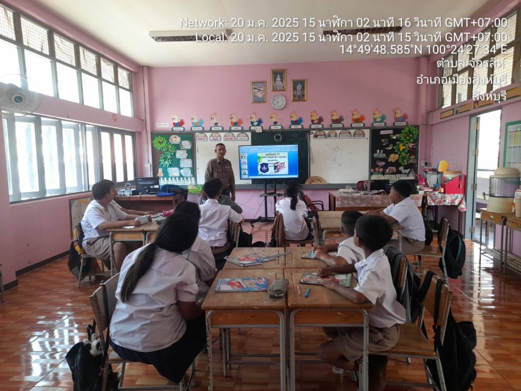ครูตำรวจแดร์ (D.A.R.E) 20 มกราคม 2568 โดย adminMuangsing / ผลการปฏิบัติงานของสายงานป้องกันปราบปราม เดือน มกราคม 2568,สายงานป้องกันปราบปราม จำนวนคนดู 5 วันที่ 20 มกราคม 2568 เวลา 14.30-15.30 น. ภายใต้การอำนวยการของ พ.ต.อ.ปฏิกรณ์ หาญหัตถกิจ ผกก.สภ.เมืองสิงห์บุรี พ.ต.ท.กฤษณพงศ์ ชูตระกูล รอง ผกก.ป.สภ.เมืองสิงห์บุรี , พ.ต.ต.นิรุต วิเลปะนะ สวป.(ชส.) สภ.เมืองสิงห์บุรี มอบหมายให้ ร.ต.ท.วิทยา โพธานันท์ รอง สว.(ป.)สภ.เมืองสิงห์บุรี เป็นวิทยากรครูตำรวจแดร์ทำการสอนหลักสูตร D.A.R.E. ให้แก่นักเรียนชั้นประถมที่ 5 โรงเรียนวัดจักรสีห์ ตำบลจักรสีห์ อำเภอเมือง จังหวัดสิงห์บุรี