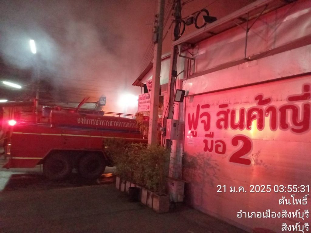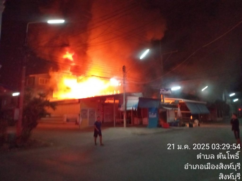 วันที่ ๒๑ มกราคม ๒๕๖๘ เวลาประมาณ ๐๓.๒๐ น. ร.ต.อ.จิตติ ปานขลิบ พนักงานสอบสวนเวร ได้รับแจ้งจากศูนย์วิทยุมีเหตุเพลิงไหม้บ้านเลขที่ ๕๙/๑ (ร้านขายมะพร้าว,คั้นกะทิ) หมู่ ๕ ต.ต้นโพธิ์ อ.เมือง จ.สิงห์บุรี จึงเดินทางไปตรวจสอบ พบว่าบ้านเลขที่ดังกล่าวลักษณะด้านหน้าติดถนนเป็นร้านมะพร้าวผลิตและคันกะทิ มี น.ส.ณัฐธ์กฤษญาภา คงเคี่ยม แสดงตนเป็นผู้ครองครองเจ้าของร้านดังกล่าว บริเวณใกล้เคียงติดกันด้านขวามีร้านขายขนม (โกดังเก็บขนม ๒ คูหา) ไม่ทราบเลขที่ หมู่ ๕ ต.ต้นโพธิ์ อ.เมือง จ.สิงห์บุรี มี นางมยุรี งามวิริยะประเสริฐ เป็นผู้ครอบครองเจ้าของร้านดังกล่าว และมีนางยุพิน หยดย้อย ส่วนด้านซ้ายมีบ้านเลขที่ ๔๙ และ ร้านห้องเย็นกำนันตัง หมู่ ๕ ต.ต้นโพธิ์ อ.เมือง จ.สิงห์บุรี มีนายบุญเลิศ สันติวราวิทย์ (กำนันตัง) เป็นผู้พักอาศัยอยู่บ้านเลขที่ดังกล่าว สอบถามข้อเท็จจริงเบื้องต้นได้ความว่า วันเดียวกัน (๒๑ ม.ค.๒๕๖๘) เวลาประมาณ ๐๓.๐๐ น. น.ส.ณัฐธ์กฤษญาภาฯ ตื่นนอนทำงานคันกะทิมะพร้าวตามปกติ สักครู่ได้ยินเสียงคล้ายไม้ลั่นมีความร้อนด้านหลังร้านจึงหันมองไปดูพบเกิดเพลิงไหม้ที่ด้านหลังร้าน จึงแจ้งให้ลูกชายแจ้งเจ้าหน้าที่ดับเพลิง ส่วนนางยุพินฯขณะนอนหลับอยู่ได้ยินเสียงไม้ลั่นจึงตื่นนอนพบว่าเพลิงกำลังไหม้ร้านขายขนมโกดังเก็บสินค้าขนมปังจึงหนีออกด้านหลังร้าน จากเหตุเพลิงไหม้ดังกล่าวบ้านเลขที่ ๕๙/๑ (ร้านขายมะพร้าว,คั้นกะทิ) ถูกเพลิงไม้ได้รับความเสียหายทั้งหลัง , ร้านขายขนม (โกดังเก็บขนม , มีประกันอัคคีภัย) ถูกเพลิงไหม้เสียหายทั้งหลัง ทรัพย์สินและรถยนต์กระบะยี่ห้อโตโยต้า ทะเบียน ไม่ทราบหมวดอักษร 3863 สิงห์บุรี ที่อยู่ในร้านขายขนมได้ถูกเพลิงไหม้ได้รับความเสียหาย ,บ้านเลขที่ ๔๙ และ ร้านห้องเย็นกำนันตัง หมู่ ๕ ต.ต้นโพธิ์ อ.เมือง จ.สิงห์บุรี ถูกเพลิงไหม้มีเขม่าดำติดที่บ้านและร้านห้องเครื่องยนต์ได้รับความเสียหาย (มีประกันอัคคีภัย) เหตุเพลิงไหม้ดังกล่าวไม่มีผู้ได้รับบาดเจ็บหรือเสียชีวิตแต่อย่างใด ทั้งนี้พนักงานสอบสวนจะดำเนินการแจ้งเจ้าหน้าที่ตำรวจพิสูจน์หลักฐานจังหวัดสิงห์บุรี ทำการตรวจพิสูจน์เหตุเพลิงไหม้ดังกล่าวและจะทำการสอบสวนต่อไป