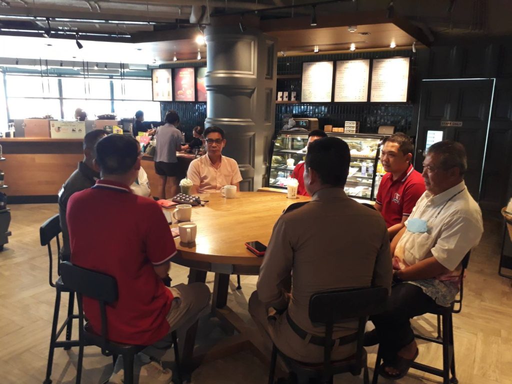 พ.ต.อ.เศกสรรค์ บัวเรือง ผกก.(สอบสวน)กลุ่มงานสอบสวน.จว.พระนครศรีอยุธยา รรท.ผกก.สภ.เมืองสิงห์บุรี ,พ.ต.ท.สิทธิชัย ปลื้มประเสริฐ สว.จร.สภ.เมืองสิงห์บุรี ,นายสมชาย จั่นฮวด ประธานกต.ตร.สภ.เมืองสิงห์บุรี พร้อมด้วยคณะกรรมการ กต.ตร.และที่ปรึกษา กต.ตร.สภ.เมืองสิงห์บุรี ร่วมประชุมขับเคลื่อนการดำเนินงานของคณะกรรมการ กต.ตร.สภ.เมืองสิงห์บุรี ณ ร้านกาแฟสตาร์บัคส์ ห้างไชยแสงดีพาร์ทเม้นท์สโตร์