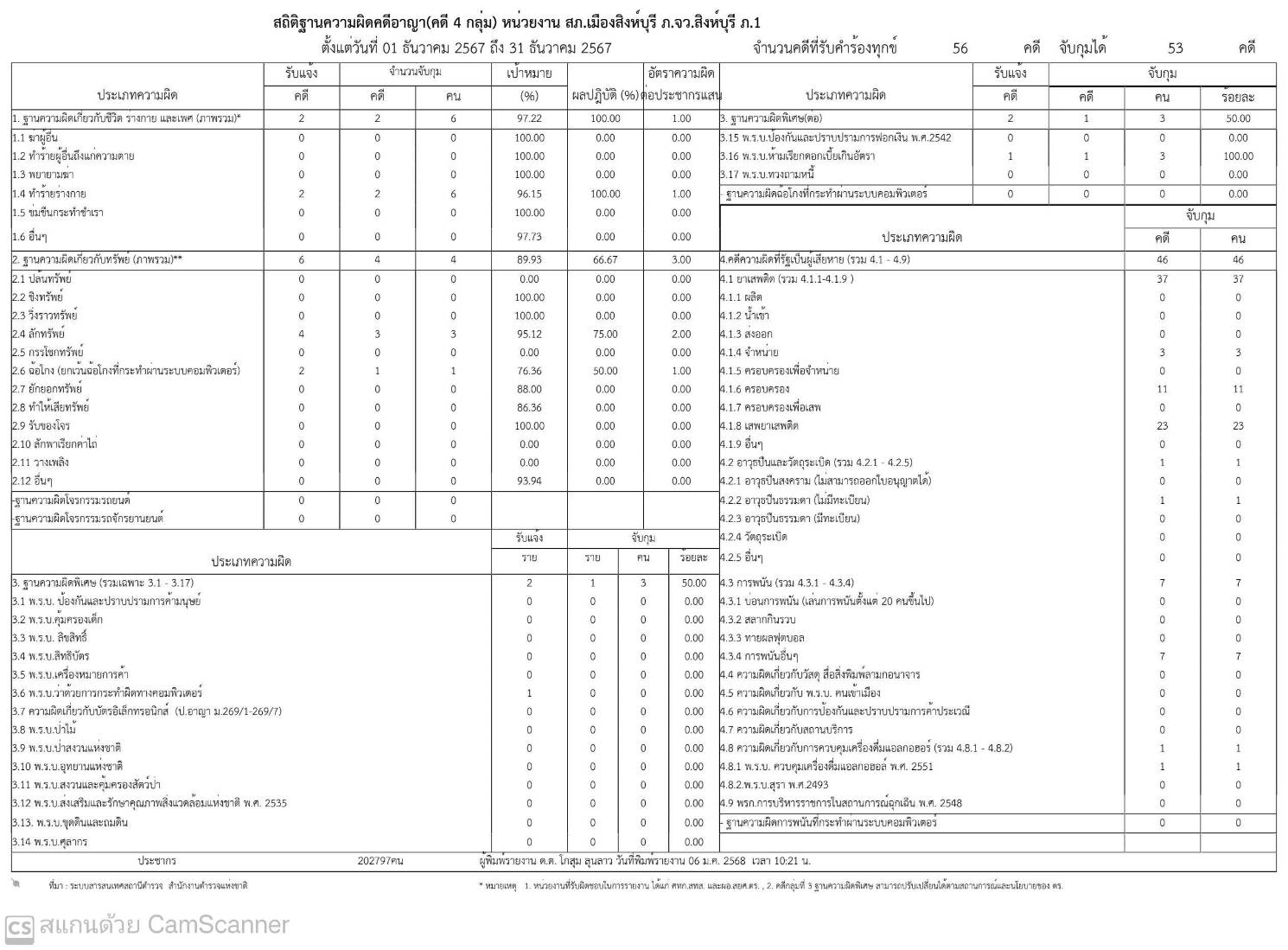 จำนวนคนดู 2 สถิติคดีอาญา 4 กลุ่ม ของ สภ.เมืองสิงห์บุรี ประจำเดือน ธันวาคม 2568