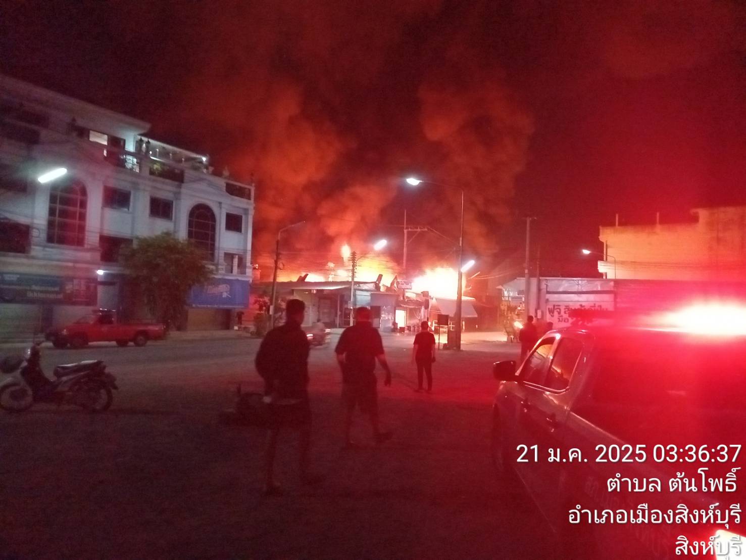 ตรวจที่เกิดเหตุเพลิงไหม้ทางเข้าตลาดสนามมวยเก่า