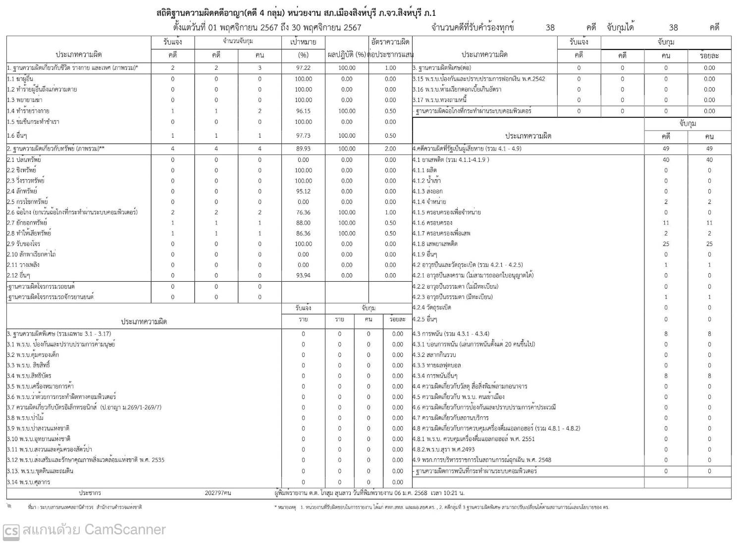 สถิติคดีอาญา 4 กลุ่ม ประจำเดือน พฤศจิกายน 2567