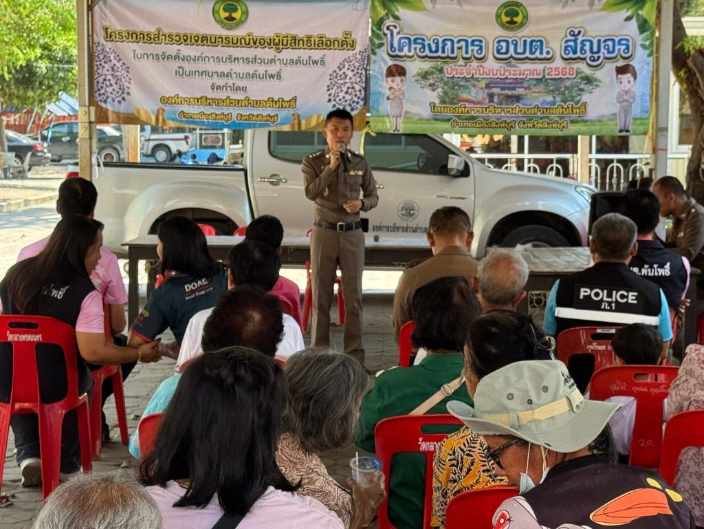 ร่วมกิจกรรม อบต.สัญจร 4 มีนาคม 2568 โดย adminMuangsing / ข่าวประชาสัมพันธ์,ข่าวภารกิจผู้บังคับบัญชา จำนวนคนดู 3 วันที่ 4 มีนาคม 2568 เวลา 13.00 น. พ.ต.อ.ปฏิกรณ์ หาญหัตถกิจ ผกก.สภ.เมืองสืงห์บุรี พร้อมด้วย พ.ต.ต.นิรุต วิเลปนะ สวป.(ชส) สภ.เมืองสิงห์บุรี และเจ้าหน้าที่ตำรวจชุดชุมชนสัมพันธ์ สภ.เมืองสิงห์บุรี ร่วมโครงการ อบต.สัญจร ประจำปีงบประมาณ 2568 ให้ความรู้เกี่ยวกับการหลอกลวงออนไลน์ , กฎหมายเกี่ยวกับบุหรี่ไฟฟ้า และปัญหายาเสพติดในชุมชน ณ วัดกลางพรหมนคร ต.ต้นโพธิ์ อ.เมืองสิงห์บุรี จ.สิงห์บุรี