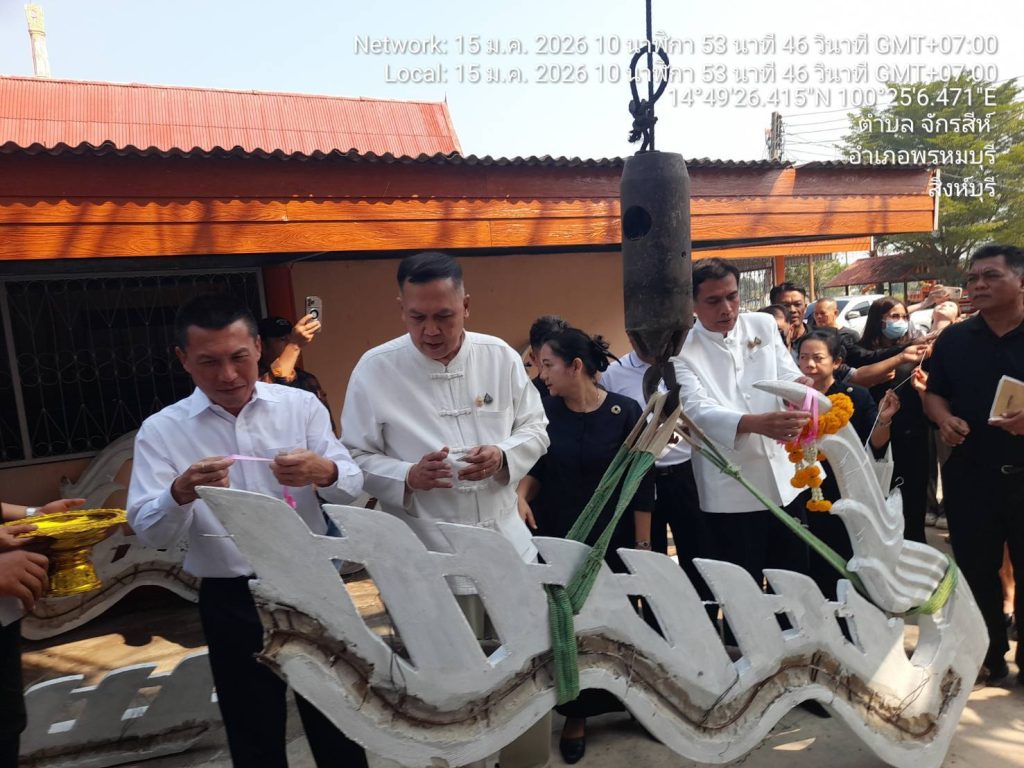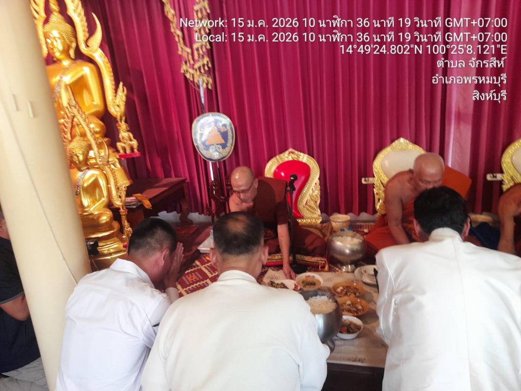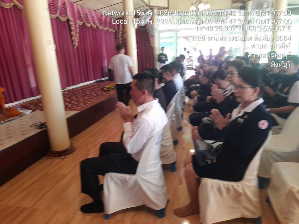 วันที่ 15 มกราคม 2569 เวลา 09.29 น. พ.ต.อ.ปฏิกรณ์ หาญหัตถกิจผกก.สภ.เมืองสิงห์บุรี ร่วมพิธีทำบุญถวายผ้าป่า ฟังธรรมเทศนารักษาศิล ตามโครงการโยมพบพระ ณ วัดแคเทพนิมิตร พ.ต.ท.กฤษณพงศ์ ชูตระกูล รอง ผกก.ป. สภ.เมืองสิงห์บุรี มอบหมายให้ สายตรวจตำบลจักรสีห์ร่วมพิธีและดูแลความสงบเรียบร้อยภายในบริเวณพิธี
