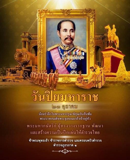 วันปิยมหาราช ๒๓ ตุลาคม 23 ตุลาคม 2567 โดย adminMuangsing / ข่าวประชาสัมพันธ์ จำนวนคนดู 3 วันปิยมหาราช ๒๓ ตุลาคม น้อมรำลึกในพระมหากรุณาธิคุณอันล้นพ้น “พระบาทสมเด็จพระจุลจอมเกล้าเจ้าอยู่หัว” พระมหากษัตริย์ ผู้ทรงวางรากฐาน พัฒนา และสร้างความเป็นปึกแผ่นให้ “ตำรวจไทย” ข้าพระพุทธเจ้า ข้าราชการตำรวจ และครอบครัวตำรวจ ตำรวจภูธรภาค ๑#วันปิยมหาราช#ฝ่ายอำนวยการ5 #ตำรวจภูธรภาค1#สํานักงานตํารวจแห่งชาติ