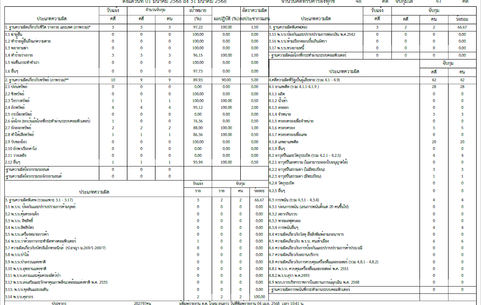 สถิติคดีอาญา 4 กลุ่ม ประจำเดือน มีนาคม 2568 ของ สภ.เมืองสิงห์บุรี