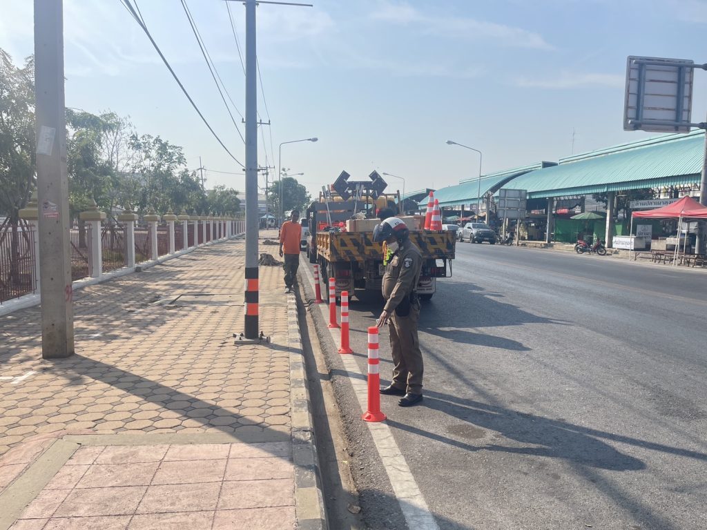 อำนวยความสะดวกด้านการจราจร 28 กุมภาพันธ์ 2568 โดย adminMuangsing / ข่าวกิจกรรม,ผลการปฏิบัติงานของสายงานจราจร เดือน กุมภาพันธ์ 2568,สายงานจราจร จำนวนคนดู 2 วันที่ 28 กุมภาพันธ์ 2568 เวลา 09.45 น. ภายใต้การอำนวยการของพ.ต.อ.ปฏิกรณ์ หาญหัตถกิจ ผกก.สภ.เมืองสิงห์บุรี พ.ต.ท.กฤษณพงศ์ ชูตระกูล รอง ผกก.ป.สภ.เมืองสิงห์บุรี มอบหมายให้ พ.ต.ท.บุญธัย จันทะบุรี สว.จร.สภ.เมืองสิงห์บุรี พร้อมกำลังเจ้าหน้าที่ตำรวจจราจร ร่วมกับแขวงทางหลวงสิงห์บุรี ได้ทำการเจาะพื้นถนนยึดเสากรวยยางตามแนวริมถนนคันคลองฝั่งตะวันออก ตั้งแต่ หลังโรงพยาบาลสิงห์บุรี- ทางเข้าท่ารถ บขส.สิงห์บุรี