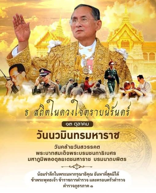 13 ธันวาคม “วันนวมินทรมหาราช” 13 ธันวาคม 2567 โดย adminMuangsing / ข่าวประชาสัมพันธ์ จำนวนคนดู 3 ธ สถิตในดวงใจตราบนิรันดร์๑๓ ตุลาคม “วันนวมินทรมหาราช” วันคล้ายวันสวรรคต พระบาทสมเด็จพระบรมชนกาธิเบศร มหาภูมิพลอดุลยเดชมหาราช บรมนาถบพิตร น้อมรำลึกในพระมหากรุณาธิคุณ อันหาที่สุดมิได้ ข้าพระพุทธเจ้า ข้าราชการตำรวจ และครอบครัวตำรวจ ตำรวจภูธรภาค ๑#วันนวมินทรมหาราช #ฝ่ายอำนวยการ5#ตำรวจภูธรจังหวัดสิงห์บุรี #ตำรวจภูธรภาค1 #สํานักงานตํารวจแห่งชาติ