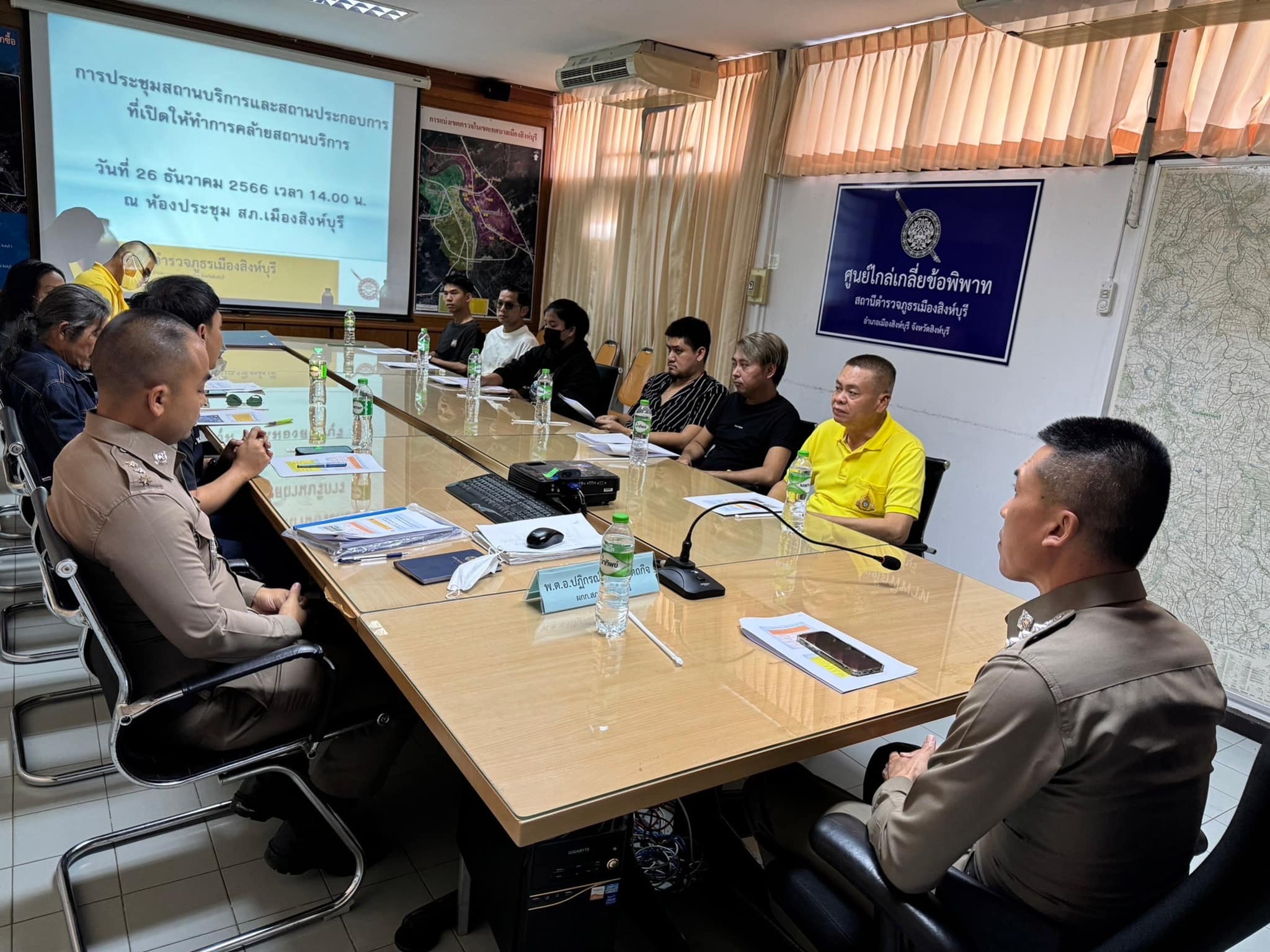 วันที่ 26 ธันวาคม 2566 เวลา 14.00 น. พ.ต.อ.ปฏิกรณ์ หาญหัตถกิจ ผกก.สภ.เมืองสิงห์บุรี ประชุมผู้ประกอบก