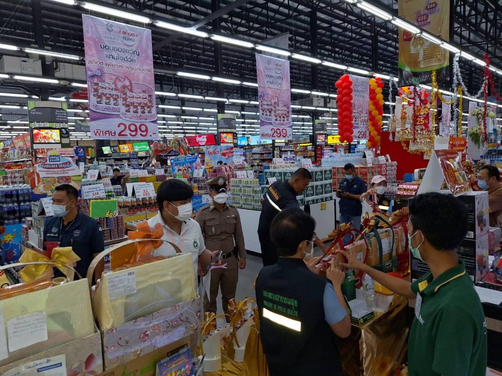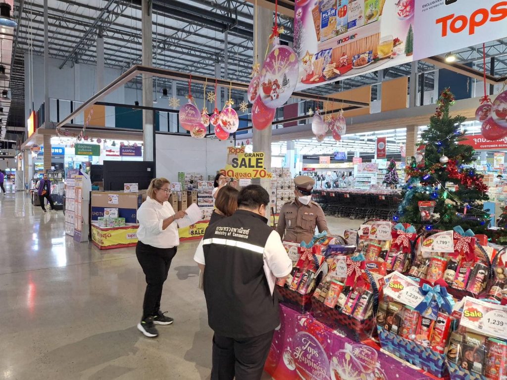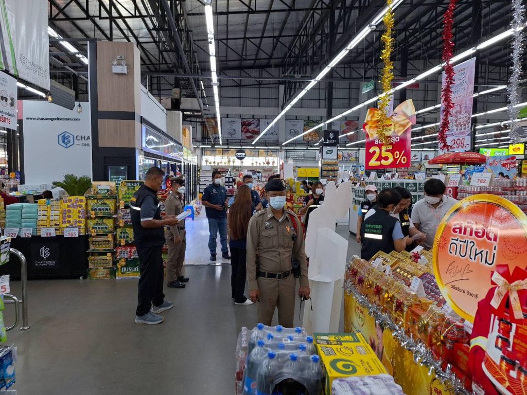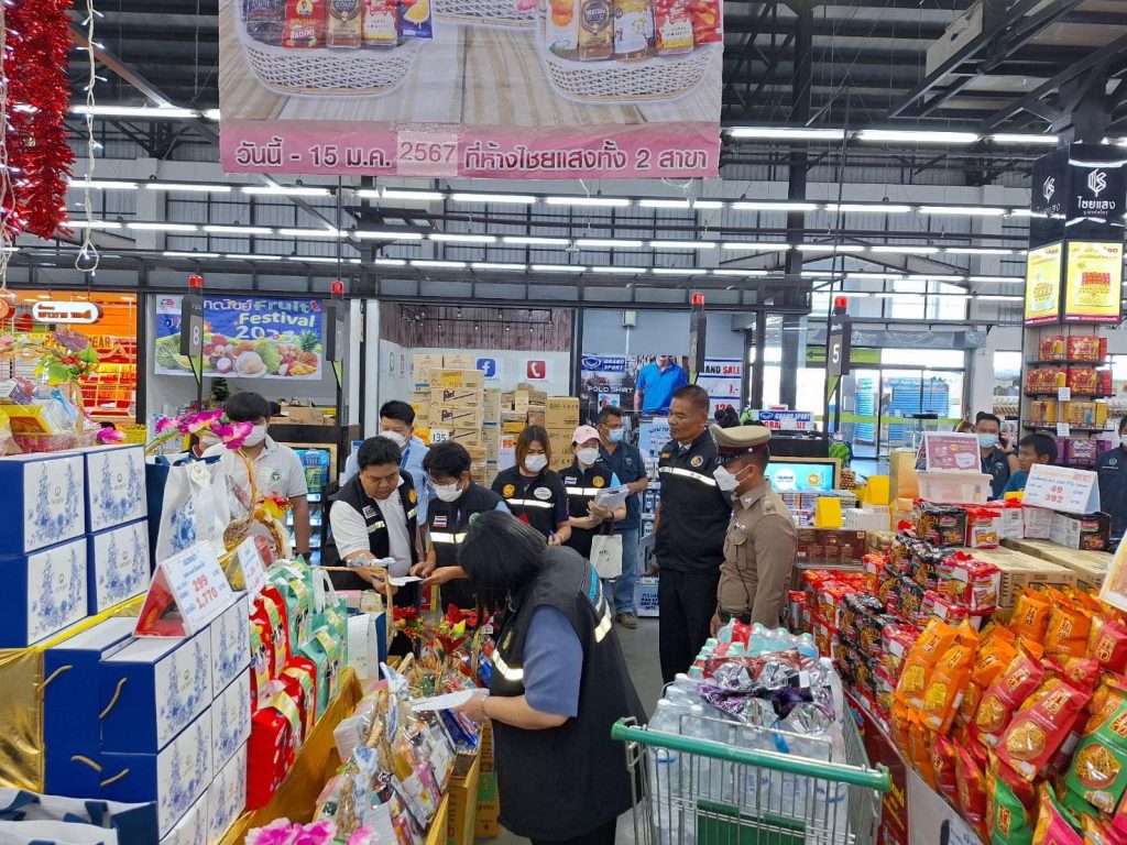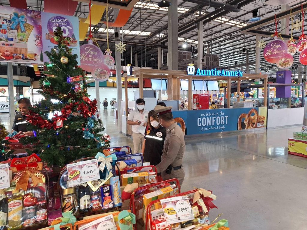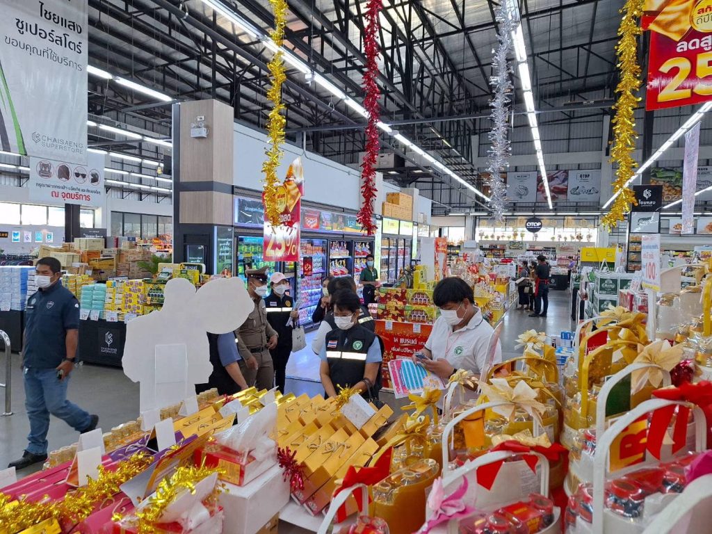 วันที่ 20 ธันวาคม 2566 ภายใต้การอำนวยการของ พ.ต.อ.ปฏิกรณ์ หาญหัตถกิจ ผกก.สภ.เมืองสิงห์บุรี มอบหมายให้ ร.ต.อ.นิรุต วิเลปนะ สวป(ชส)สภ.เมืองสิงห์บุรี ,ร.ต.อ.นรินทร์ พุ่มดวง รอง สว.(ป.)สภ.เมืองสิงห์บุรี ร่วมกับเจ้าหน้าที่จากพาณิขย์จังหวัดสิงห์บุรี กรมการค้าภายในจังหวัดสิงห์บุรี คณะกรรมการคุ้มครองผู้บริโภคจังหวัดสิงห์บุรี สาธารณะสุขจังหวัดสิงห์บุรี กอ.รมน.จังหวัดสิงห์บุรี ออกตรวจสอบสินค้าประเภทกระเช้าของขวัญวันปีใหม่กับห้างสรรพสินค้าในเขตรับผิดชอบ บริเวณห้างสรรพสินค้า ท๊อปพลาซ่า สิงห์บุรี ,ห้างสรรพสินค้า ซีเอสพาร์ค สิงห์บุรี