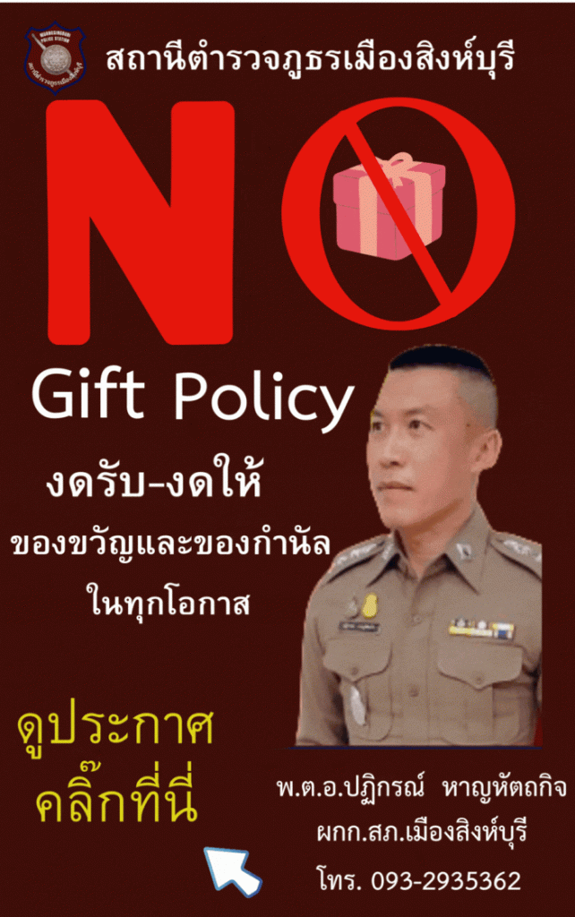 ประกาศเจตนารมณ์นโยบายNo Gift Policy จากการปฏิบัติหน้าที่
