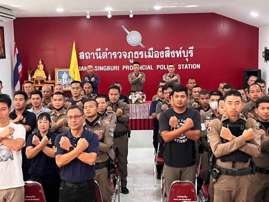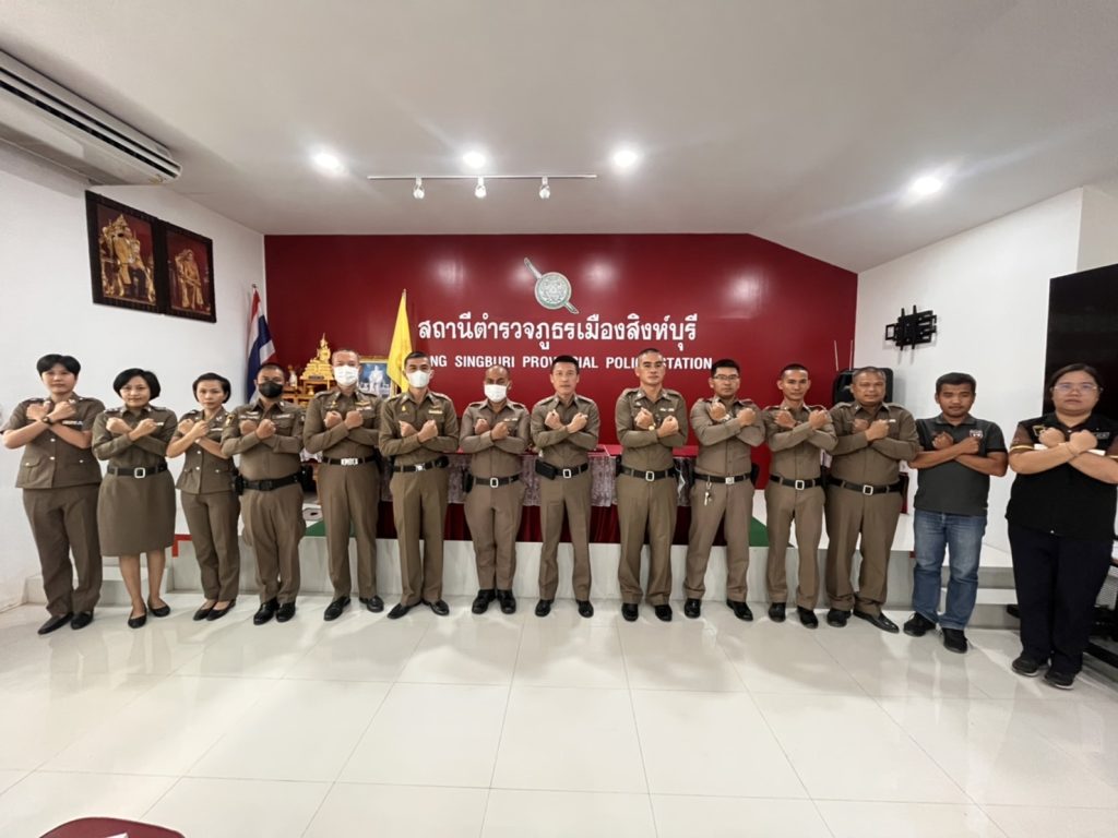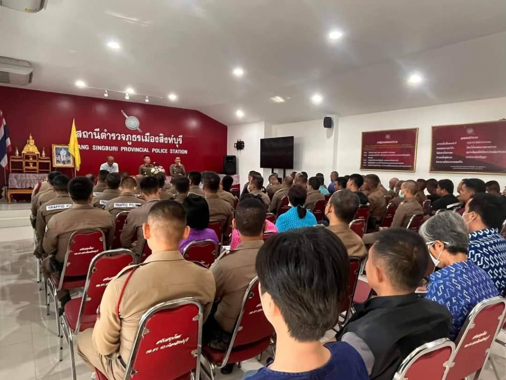ภาพกิจกรรมของหัวหน้าสถานีตำรวจประชุมชี้แจง มอบหมายผู้รับผิดชอบ เพื่อกำกับติดตามการยกระดับการเผยแพร่ข้อมูลสาธารณะ (OIT) ของสถานีตำรวจภูธรเมืองสิงห์บุรี