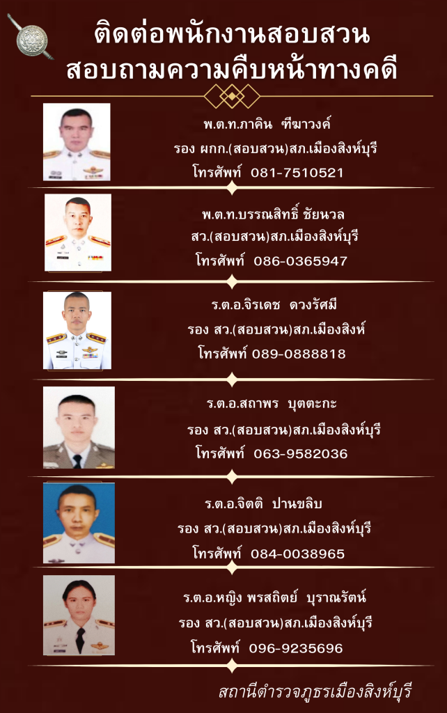ติดต่อสอบถามความคืบหน้าทางคดีกับพนักงานสอบสวนที่ท่านมาติดต่อ