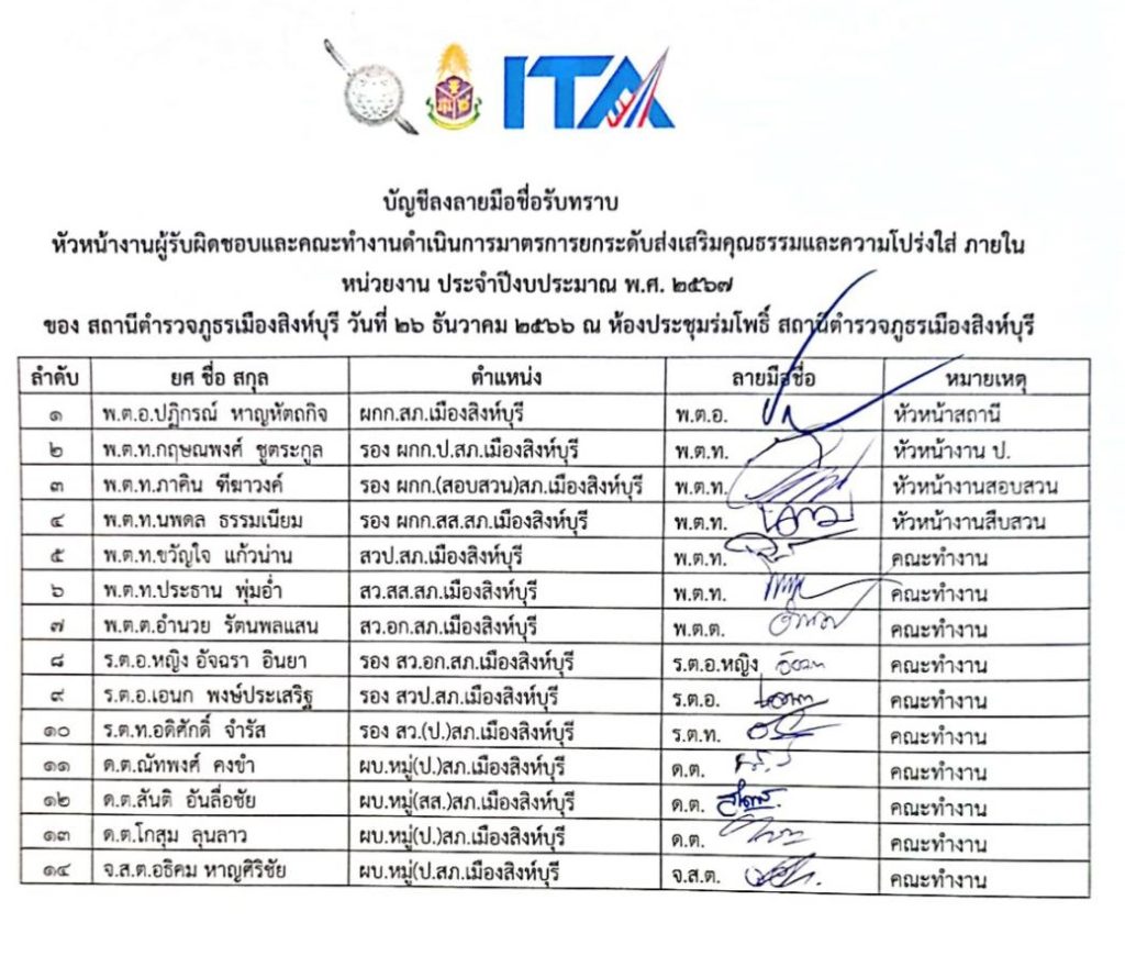 คำสั่งคณะทำงาน ITA สภ.เมืองสิงห์บุรี ปี 2567