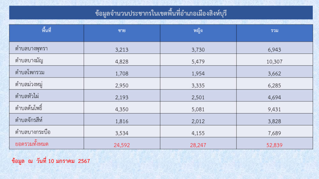 จำนวนประชากรในเขตพื้นที่อำเภอเมืองสิงห์บุรี