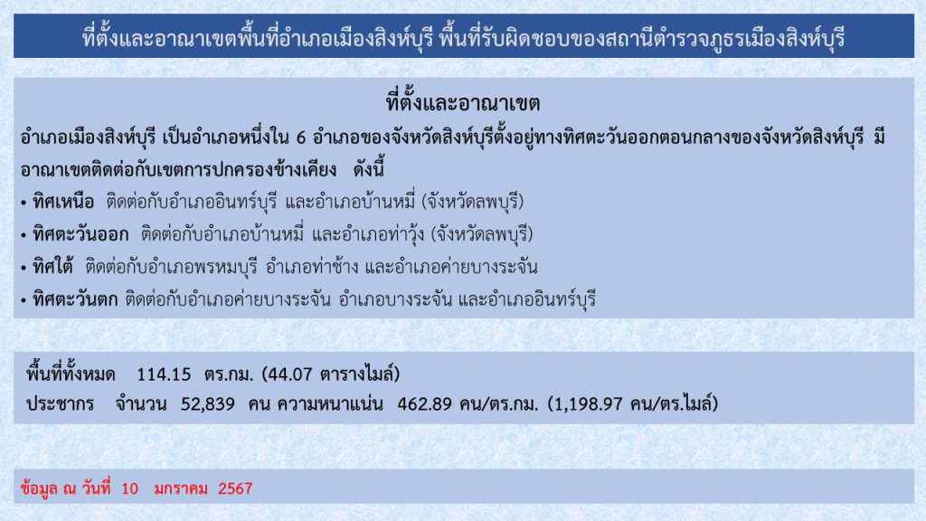 เขตพื้นที่รับผิดชอบสถานีตำรวจภูธรเมืองสิงห์บุรี