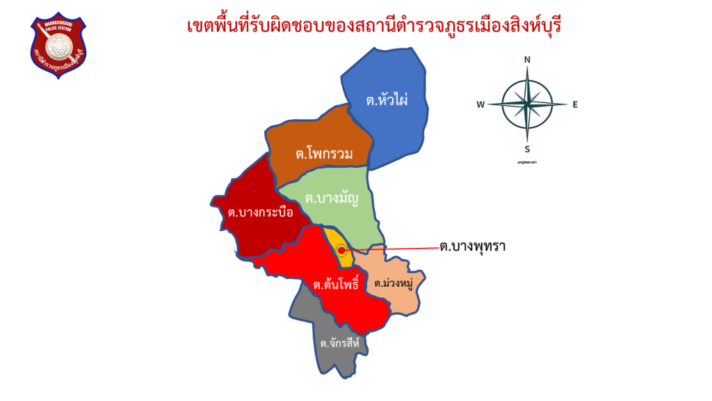 สถานีตำรวจภูธรเมืองสิงห์บุรี ที่อยู่ 367 ถนนวิไลจิตต์ ตำบลบางพุทรา อำเภอเมือง จังหวัดสิงห์บุรี 16000