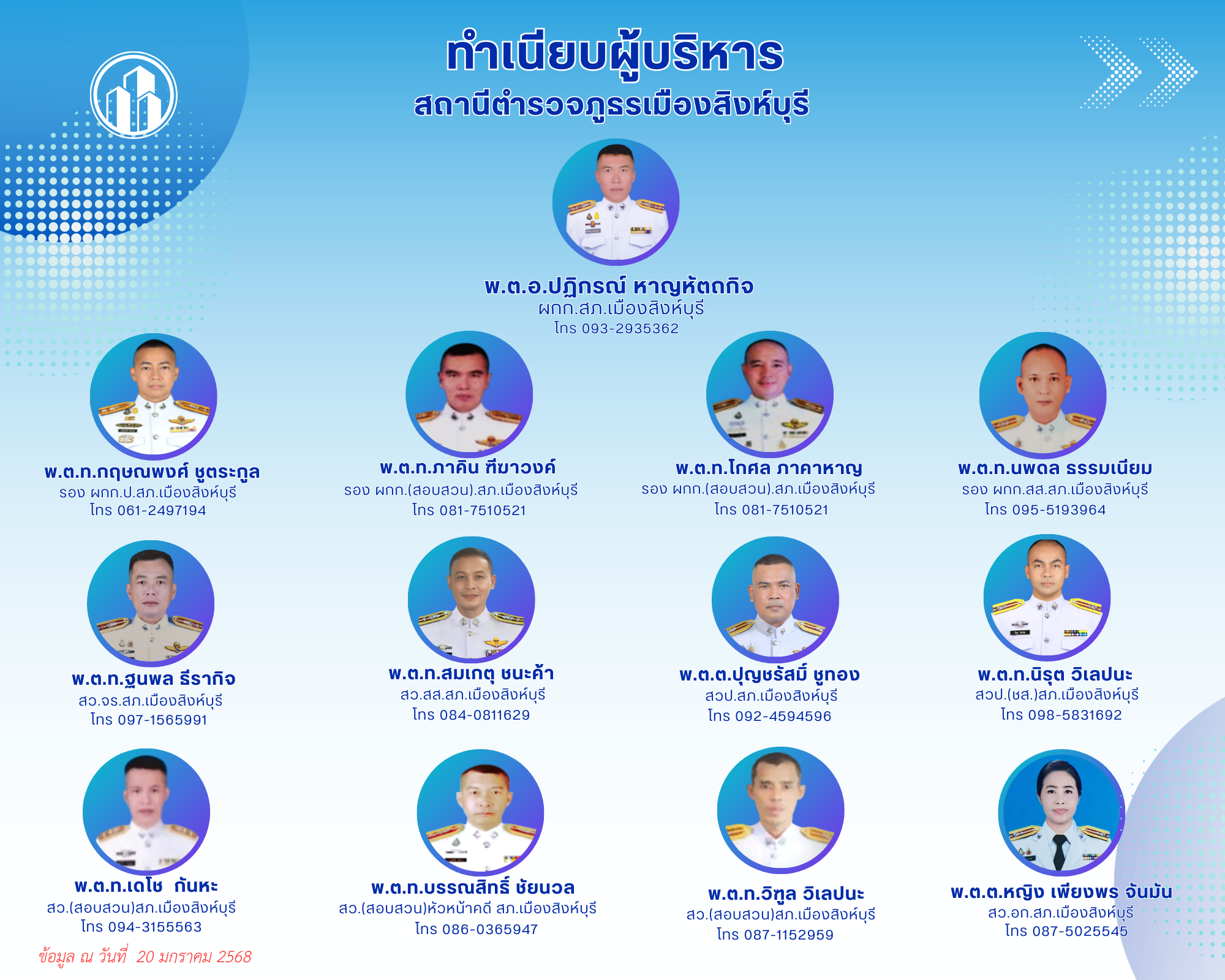ข้อมูลผู้บริหาร สถานีตำรวจภูธรเมืองสิงห์บุรี