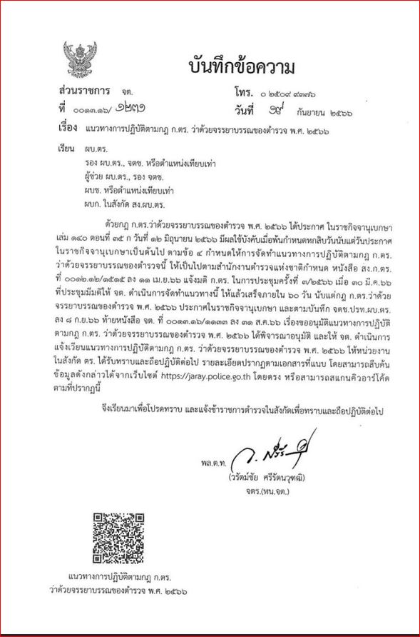 แนวทางการปฏิบัติตามกฎ ก.ตร. ว่าด้วยจรรยาบรรณของตำรวจ พ.ศ. 2566
