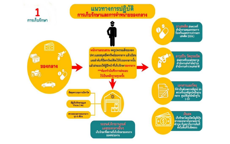 อินโฟกราฟิก แนวทางการปฏิบัติ การเก็บรักษาและการจำหน่ายของกลาง