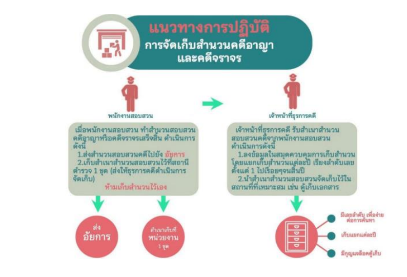 อินโฟกราฟิก แนวทางการปฏิบัติ การจัดเก็บสำนวนคดีอาญาและคดีจราจร